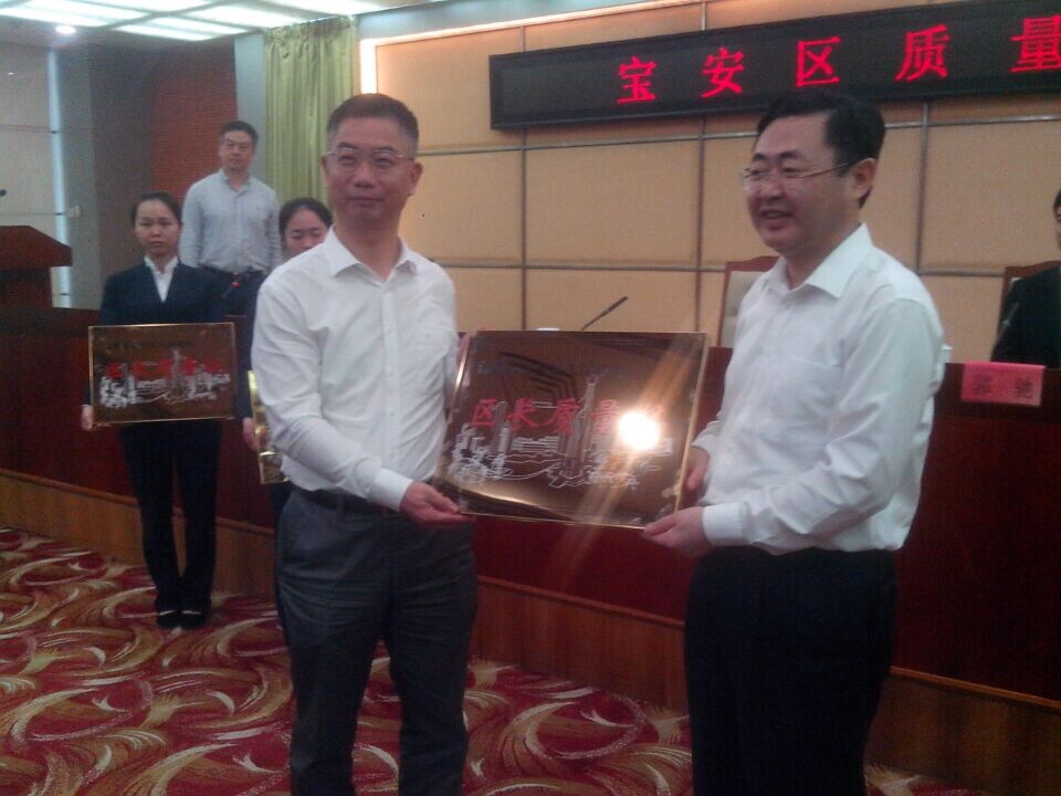 區(qū)長王宏彬同志為獲獎企業(yè)頒發(fā)了獎杯,獎杯上“以質(zhì)取勝碩果累,寶安品牌新標桿”的大字激勵著我們質(zhì)量工作者并就全區(qū)質(zhì)量工作做了重要講話,主要有以下內(nèi)容: