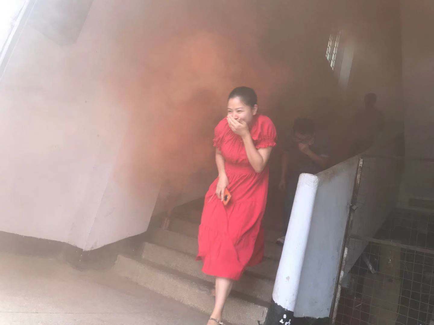 8月31日下午三點, 隨著一股濃煙飄進辦公樓內(nèi),急促刺耳的警報聲響起,消防應(yīng)急疏演練正式開始。有同事在樓道旁引導員工快速疏散,每個人各捂住口鼻,低頭有序沿著安全通道,撤離到露天地帶。集合完畢后,各部門清點人數(shù),并上報。整個演練過程安全、快速,僅用時3分鐘。