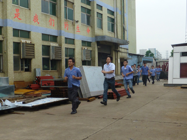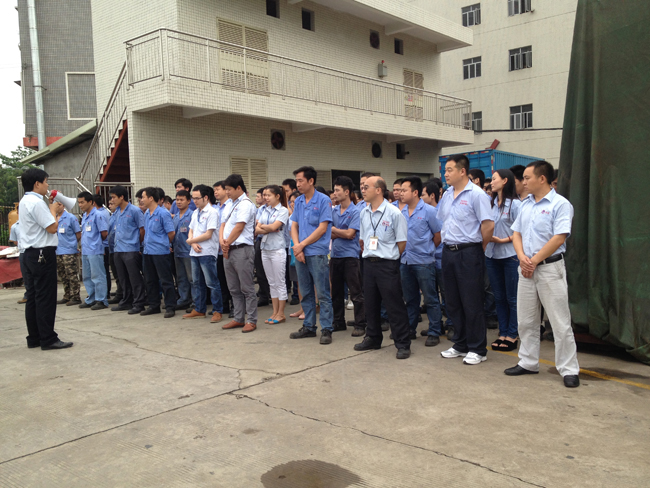 2014年4月26日17點整,消防警鈴響起,義務(wù)消防隊疏散組成員在第一時間分別趕到公司辦公樓各樓層以及宿舍內(nèi),在他們的喊話提醒下將所有員工于120秒內(nèi)有序地疏散到廠外的安全區(qū)域,在整個過程中,秩序井然、無人員受傷和擁擠踩踏的情況。要知道此次逃生演習(xí)的過程員工是不知情的,僅疏散組成員提前開會討論過。逃生演習(xí)拉開了此次消防演習(xí)的序幕。