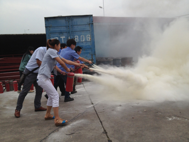 2、消防知識培訓(xùn)。等大家集中到了廠外安全區(qū)域后,由義務(wù)消防隊人員對全員進行滅火器材的使用方法。主要是干粉滅火器和消防栓的使用。安全主任謝京亮邊講解邊模擬使用傳授給所有員工滅火器的使用步驟:搖一搖、拔下插銷、瞄準火焰根部、壓下把手、來回掃射。