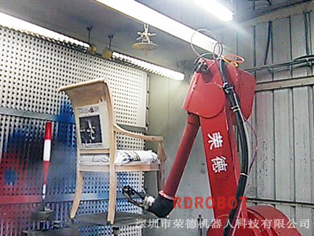 木椅在線體上步進(jìn)噴涂,且固定在治具上,定位精度需要精準(zhǔn),木椅能90度分割或者360度旋轉(zhuǎn),需要選擇合適的活動半徑噴涂機(jī)器人。