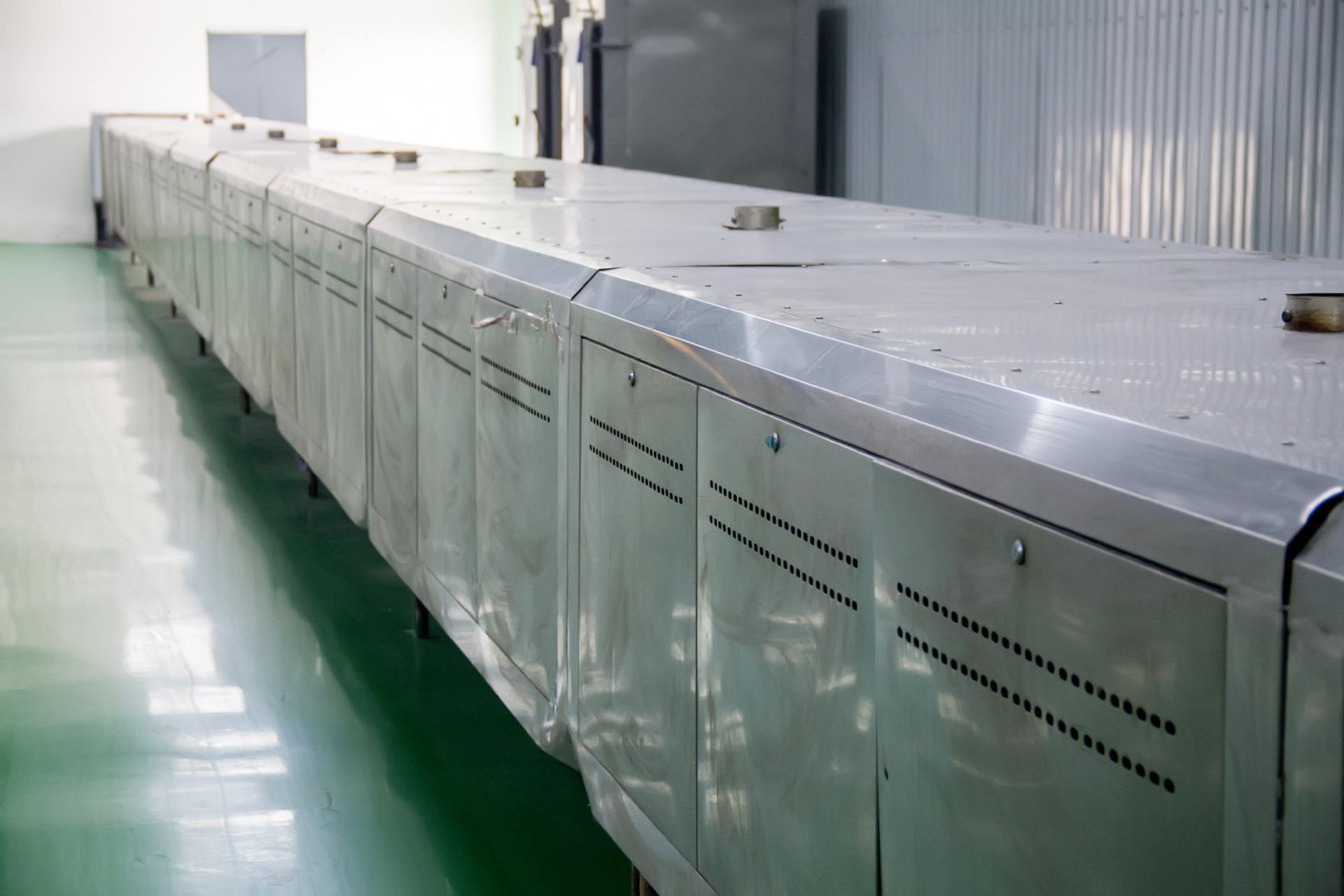 整段烘干箱體設(shè)有檢修窗口,便于維修使用,箱體預(yù)留加熱窗口,進(jìn)行封閉,后期需要增加加熱裝置可以直接使用。設(shè)有除濕口并且可以調(diào)整口徑大小,在控制臺裝有溫度、濕度檢測儀數(shù)顯儀,顯示箱內(nèi)溫濕度。