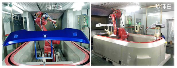 汽車尾翼機(jī)器人噴漆珍珠白、海洋藍(lán)